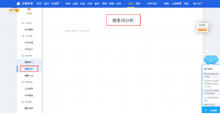 每一个长尾关键词或者属性关键词代表了这部分人群的需求,可以在生意参谋-市场-点击搜索分析,选择7天以上的数据,这样可以保证数据的精准性。同时查看搜索人气和交易指数是为了找出高搜索低竞争的词。